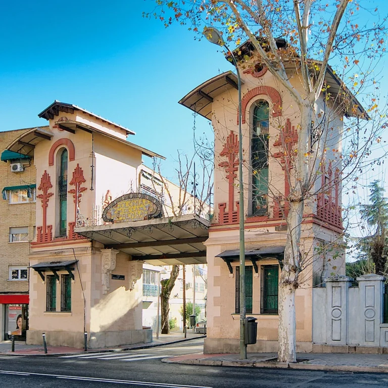 Hacia 1915 se levanta la fachada de la colonia con dos torres de estilo modernista, rematada con una placa en la parte superior de la puerta.